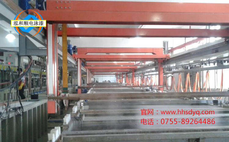 步進式是指機械以同一個步長“跳躍式”前進,它的運動速度不是勻速的。此步進式電泳涂裝生產線是一條全自動化電泳涂裝生產線。
