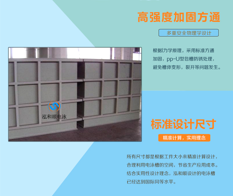 泓和順的電泳槽采用標準的A級PP板焊接而成。其韌性好、耐酸堿、表面光滑、可承受80℃以上高溫,是電泳涂裝設備的首選供應商。